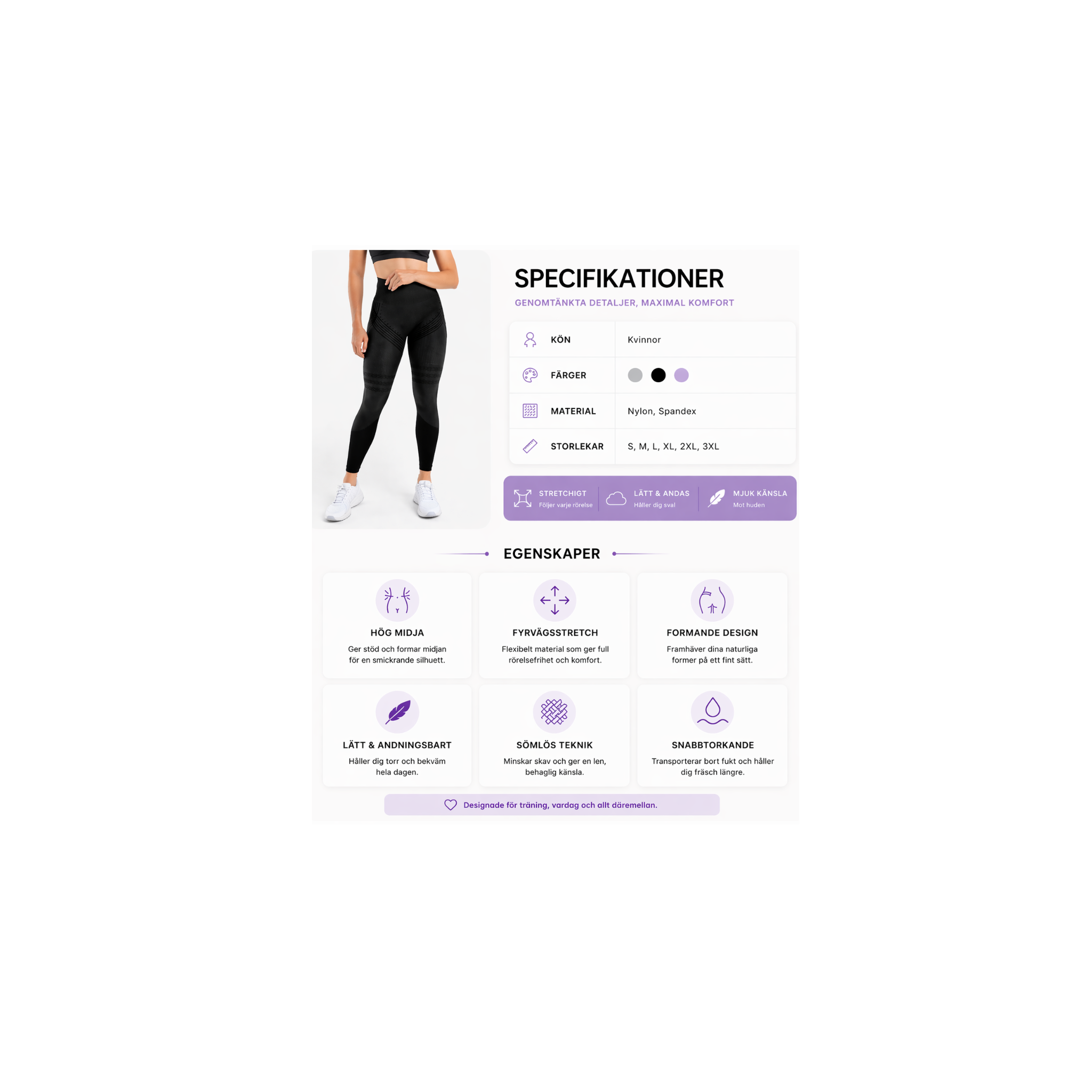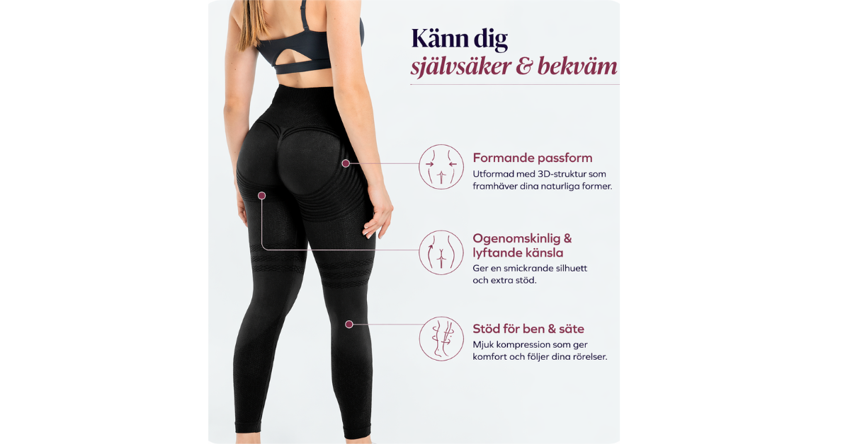 Den höga midjan ger stabilitet medan materialet följer kroppen utan att strama, vilket gör att du känner dig bekväm från första steget till sista.